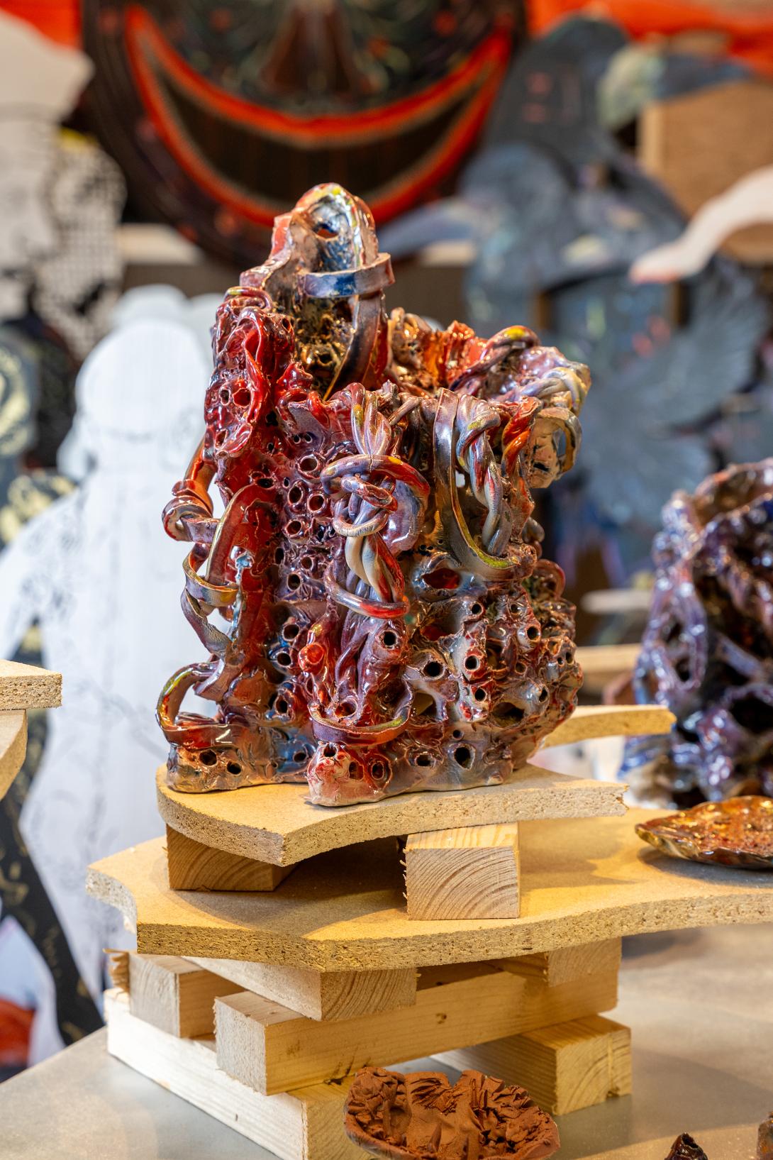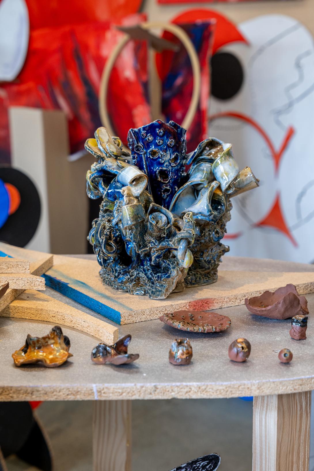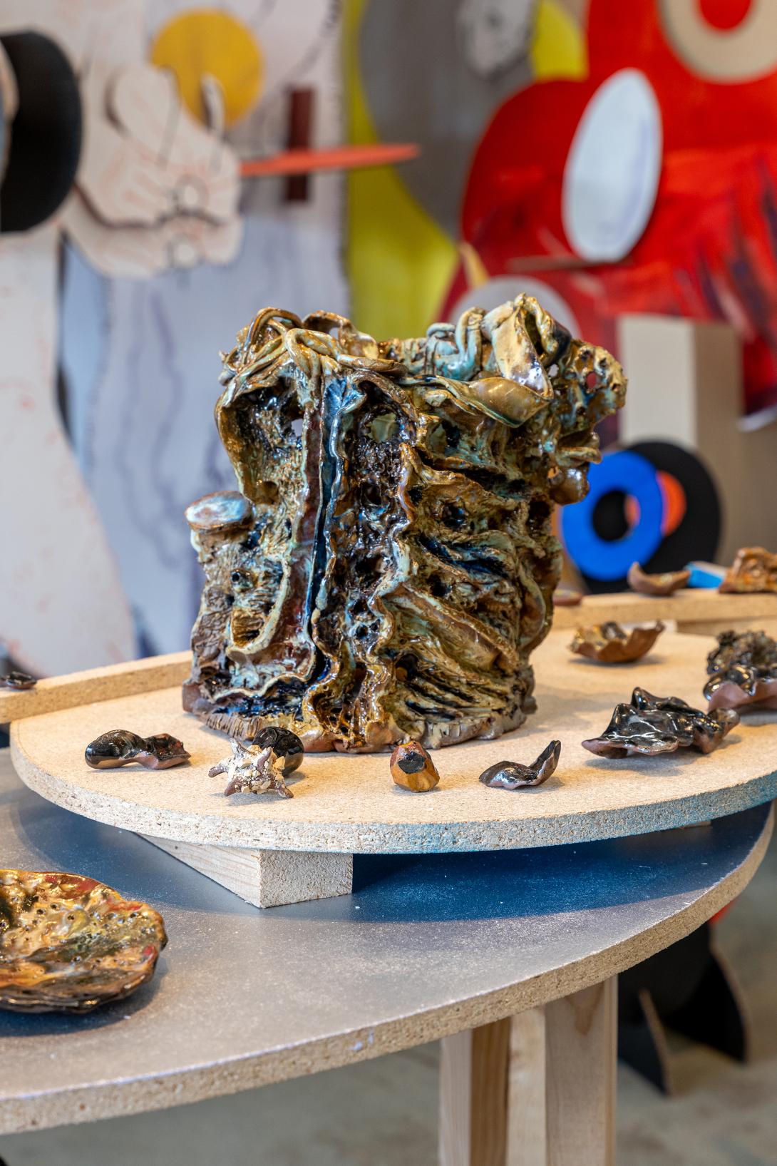 Den flyvende sommerhest fandt sted på URGER HOUSE på Sjælør station. Udstillingen blev improviseret frem over to måneder i sommeren 2025. Den består af papskulpturer fra 2016-18 som er remixed og helt ny keramik.