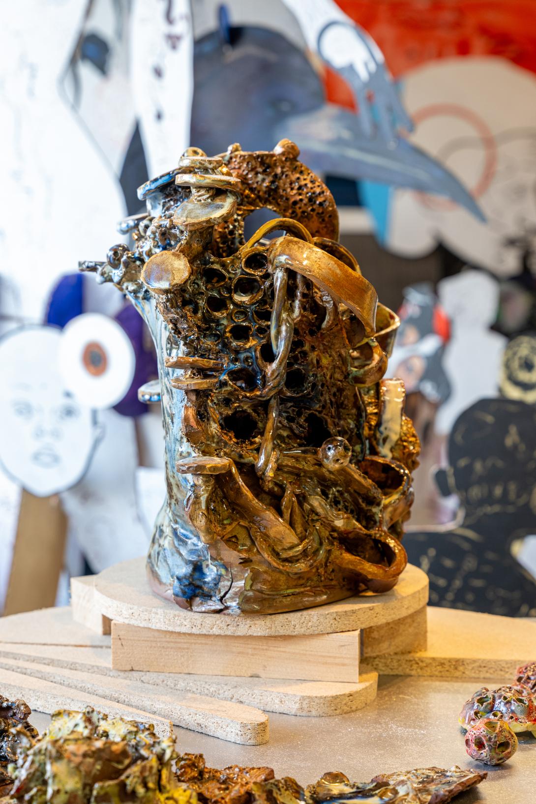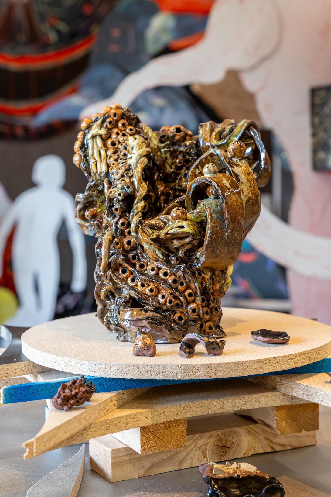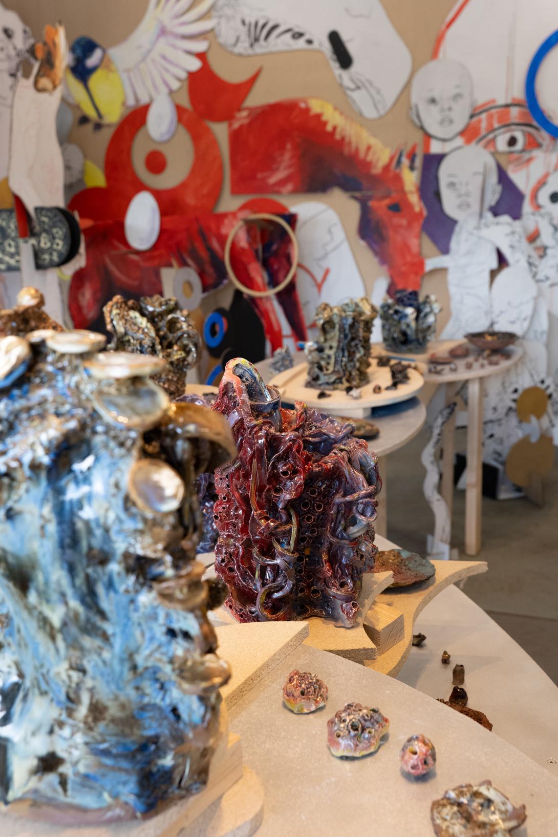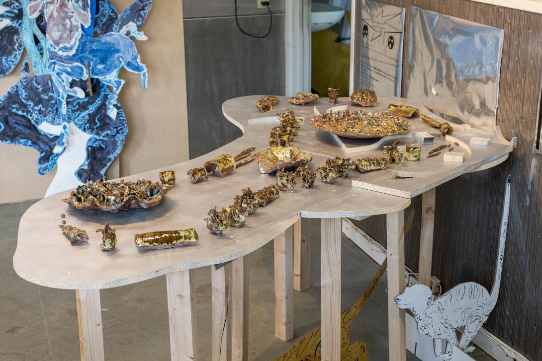 Den flyvende sommerhest fandt sted på URGER HOUSE på Sjælør station. Udstillingen blev improviseret frem over to måneder i sommeren 2025. Den består af papskulpturer fra 2016-18 som er remixed og helt ny keramik.